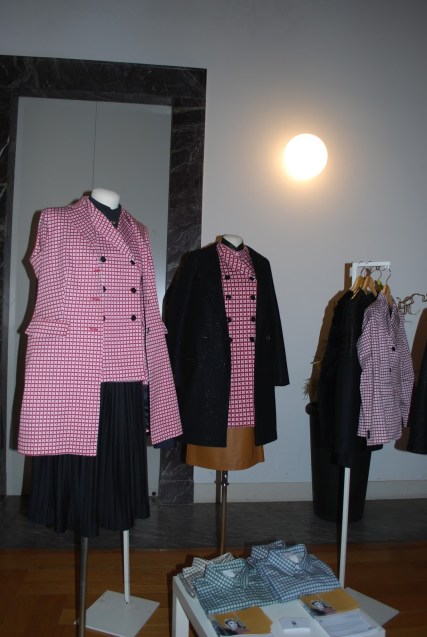 Reinterpretazione in chiave moderna di un classico: la giacca abbinata al mini abito o al tubino. Maggiore focus sulle giacche: strutturate e volumentriche, lana e neoprene vengono abbinate a tessuti sovrastampati con disegni geometrici o arricchite da giochi di contrasti di colori negli inserti e nei profili. Una collezione chiara e decisa, ricca di personalità. Ogni capo è reversibile.