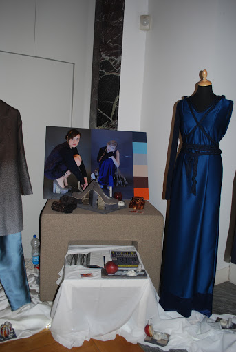 Una collezione dedicata ad una donna che non dimentica il passato, elegante, raffinata ma che sta al passo coi tempi, quindi attuale. I tessuti sono preziosi: taffetà, seta, organza. I tagli sono strutturati, volumetrici. I colori toccano tutte le declinazioni dei blu profondi e del nero. Un gioco di mix di luce e ombra.