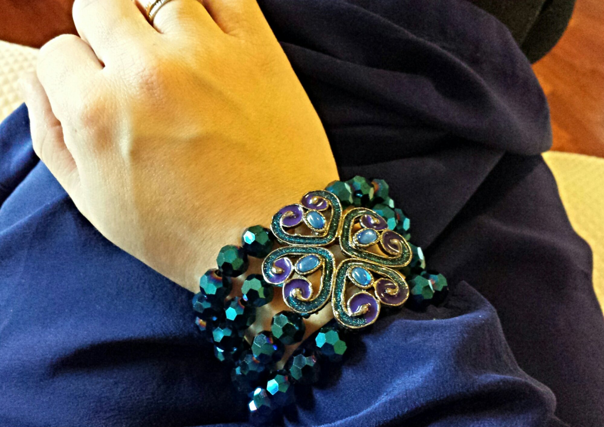 Acquistai questo bracciale un paio di anni fa’, ne fui conquistata per il tipo di laccatura e per il color blu lapis che lo caratterizza e tanto mi ricordava i mosaici di Ravenna.