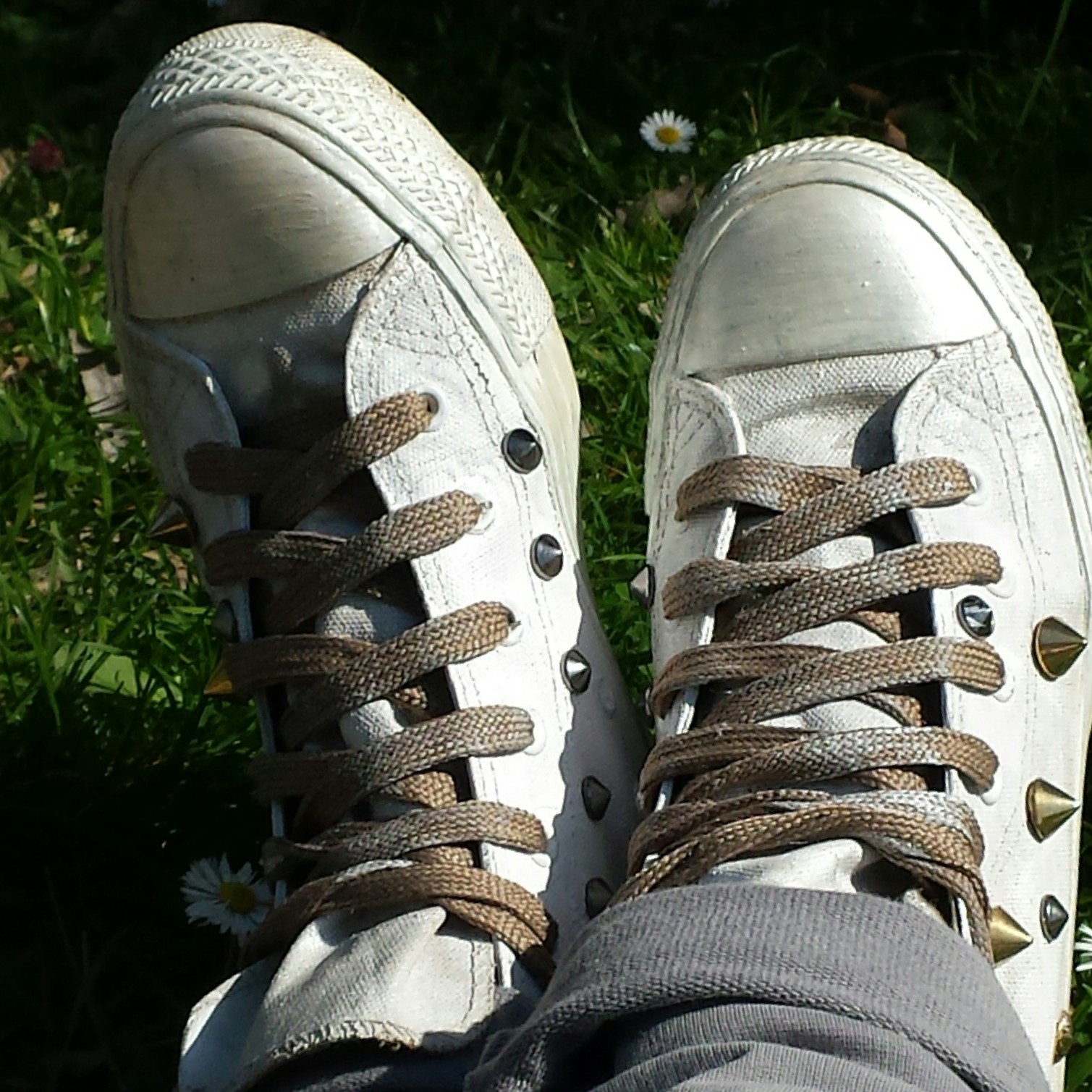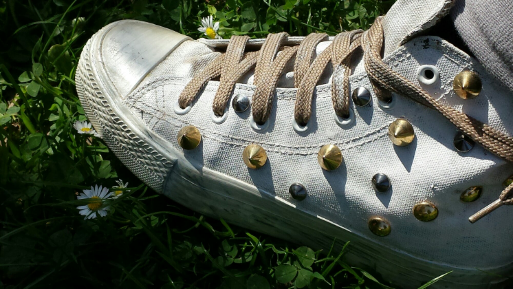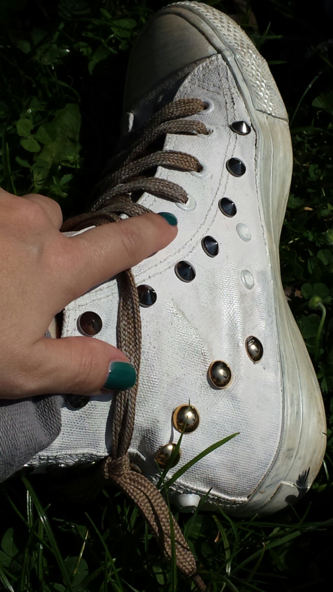 Per lei ho scelto Geox, per me una sneaker alta, borchiata e dipinta a mano, di Mario Pini.