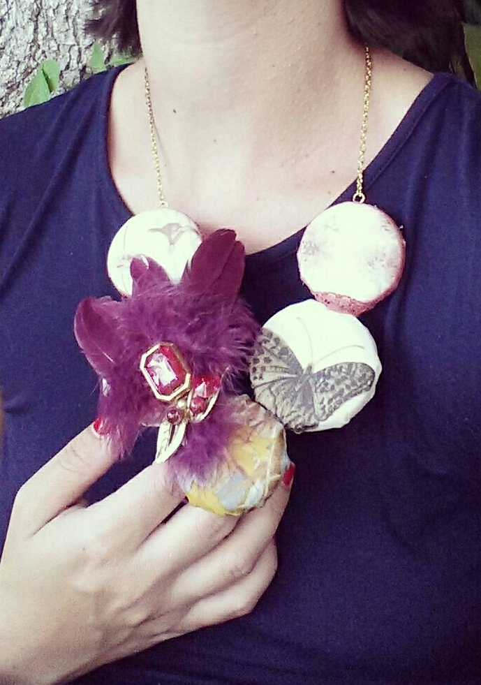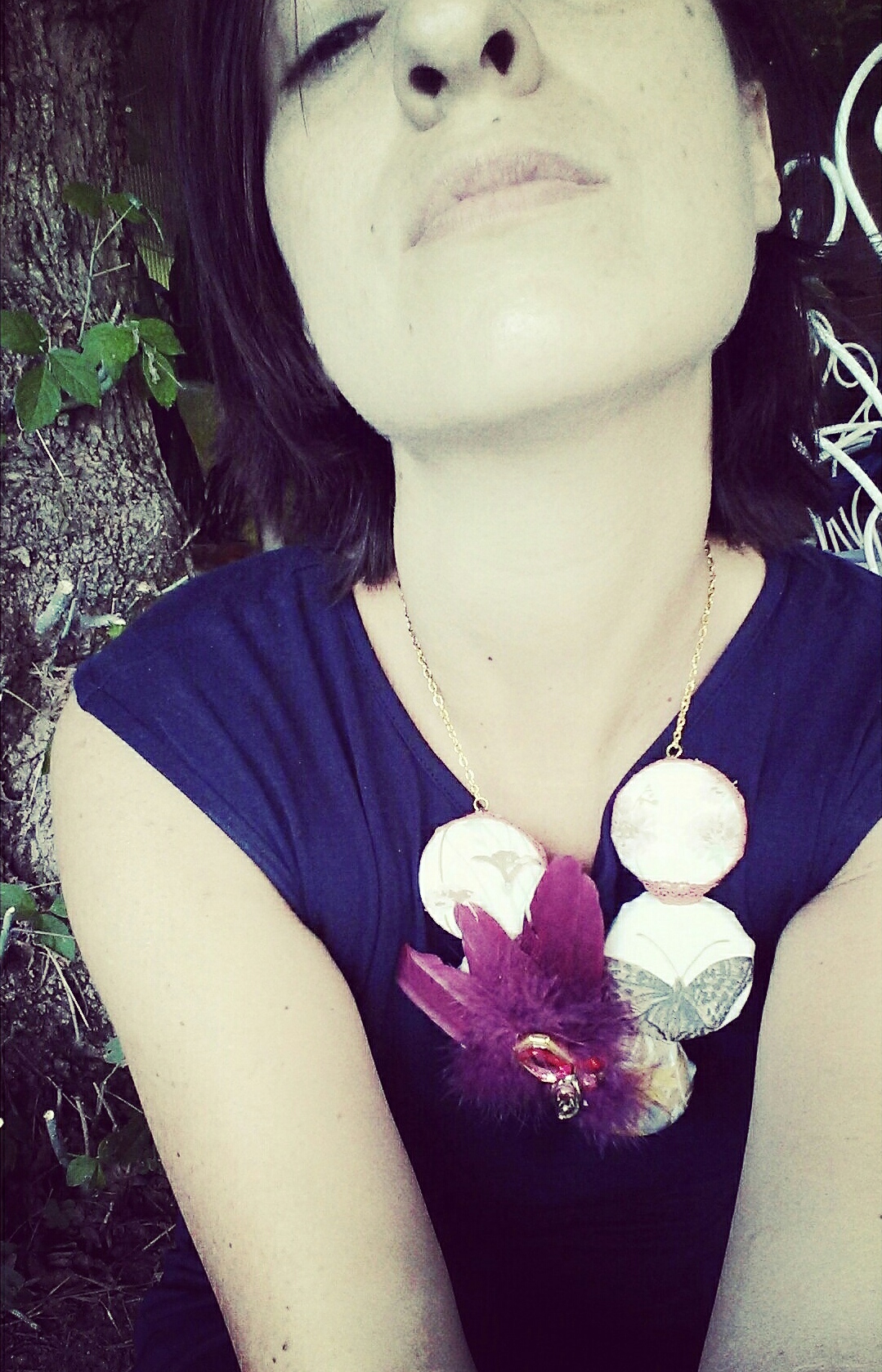 Voglio approfittare di questa atmosfera bucolica e un po’ retrô, per presentarvi un brand che ho scoperto da poco in un mercatino, si tratta di Supernova jewellery. È una piccola collezione di collane realizzate a mano con l’utilizzo di foulard in seta, gros, pizzo, pietre colorate.
