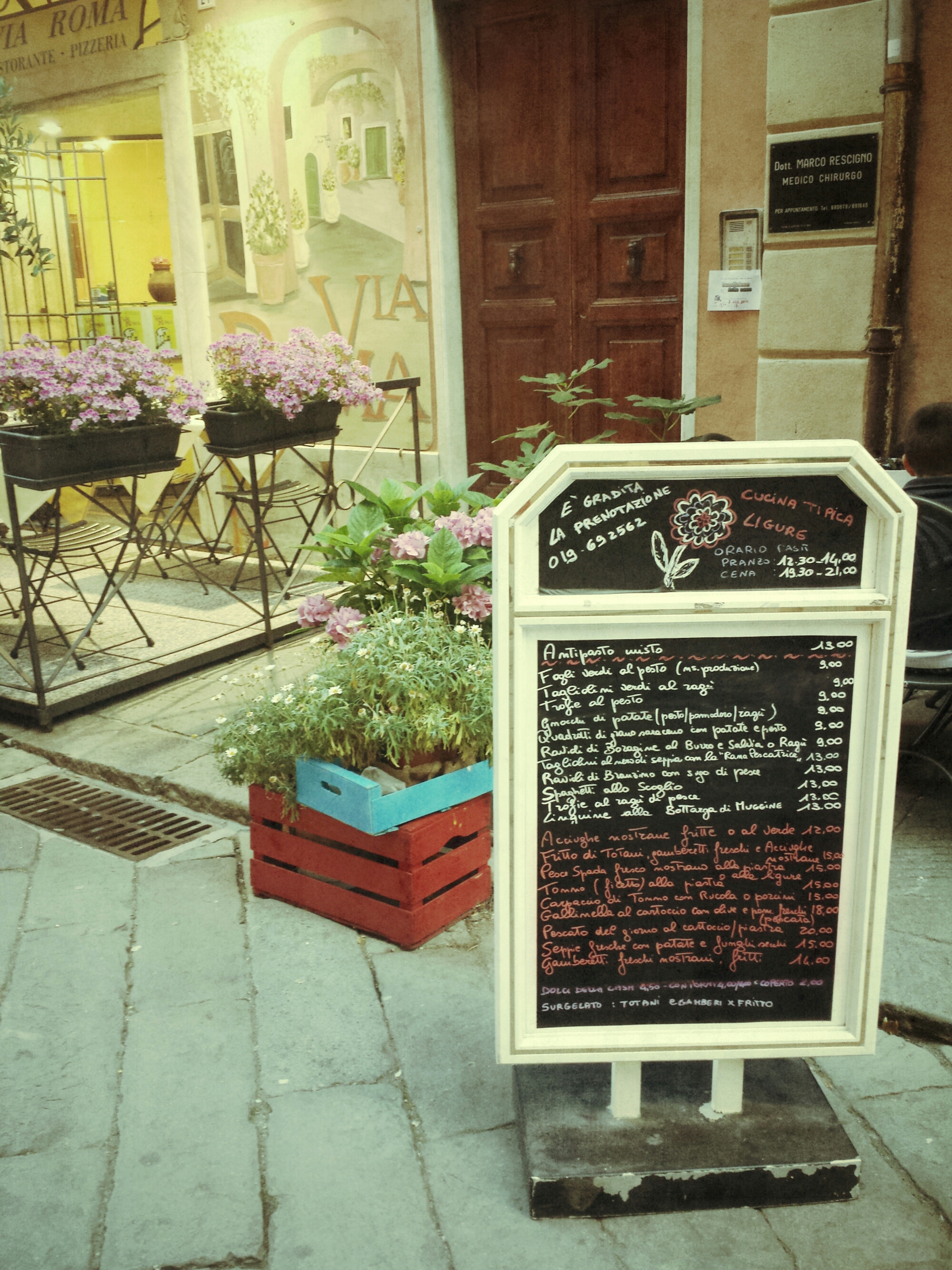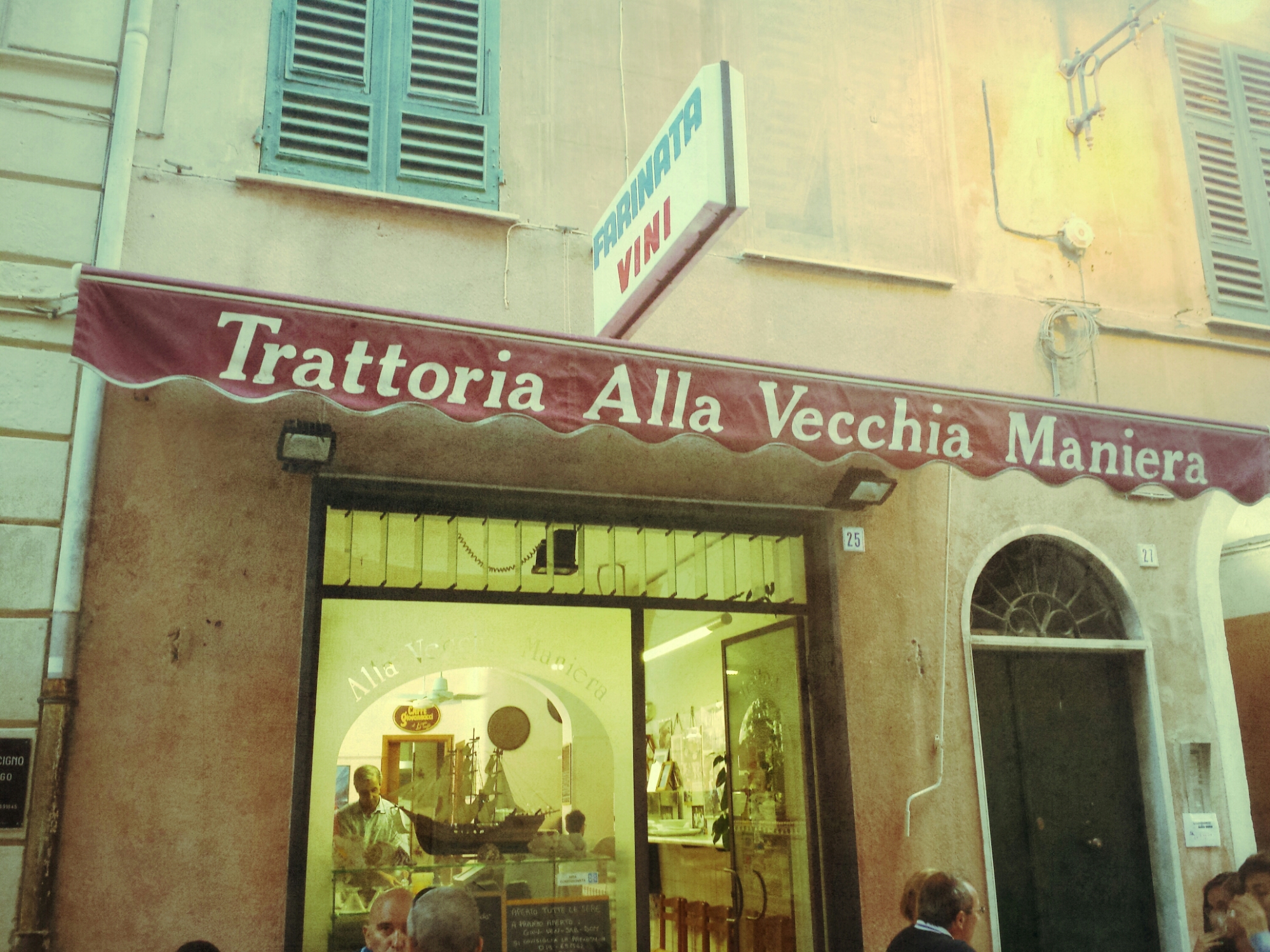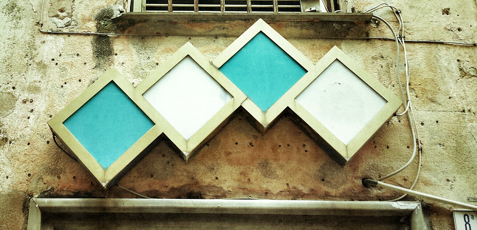 Ogni luogo ha il suo tempo e non necessariamente corrisponde al tempo storico in atto o a quello che ha ereditato dai posteri, ma il tempo nel quale gli abitanti di quel luogo hanno deciso di fermarlo. Questa è l’impressione che mi ha colta nel mio soggiorno in Liguria. Le immagini che vi mostro sono state scattate a Finale Ligure, il tempo quí si è fermato tra gli anni ’70 e ’80. Piccoli dettagli architettonici, geometrie e neon colorati, hanno il loro perché se nella gelateria locale continuano a servire l’originale gusto al Puffo e Liquirizia! Se poi capitaste da queste parti, vi consiglio caldamente di cenare “Alla Vecchia Maniera”, quí si mangia divinamente, il fritto misto di pesce é assolutamente perfetto, cucina casalinga e gentilezza assicurata. Prenotate in anticipo, altrimenti non troverete mai posto!