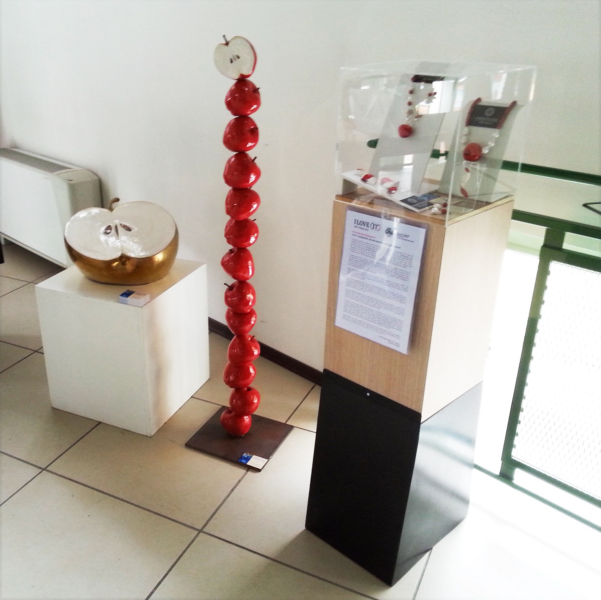 La mela, ricca di simbologia e legata alla madre Terra, viene rappresentata dalla ceramista Nadia Allario,con una colonna formata da tredici mele rosse ed una d’orata, posta in cima e tagliata a metà con i semi ben in vista.