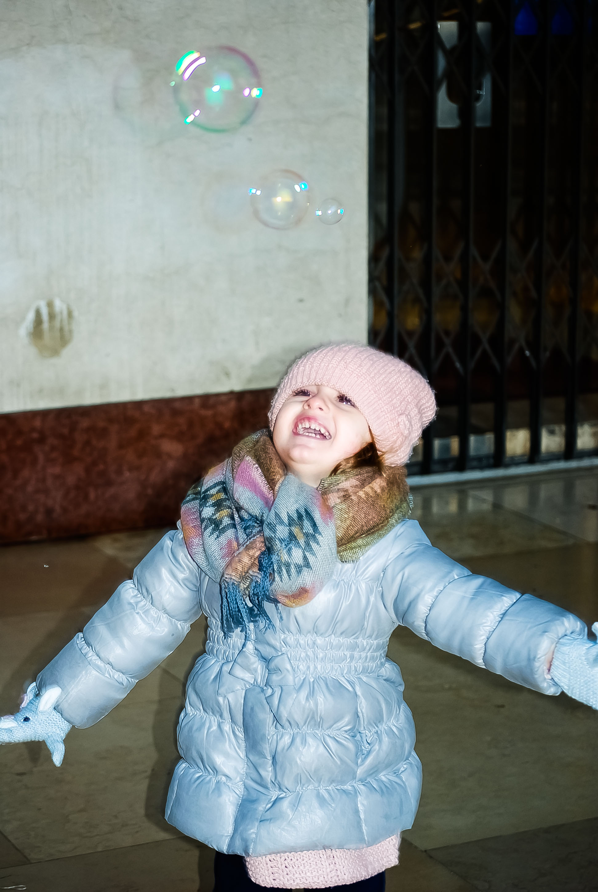 La nostra passeggiata prosegue in via Roma, eccezionalmente pedonale per le feste Natalizie! Ne approfittiamo per far giocare Vicky con le bolle di sapone, anche se é inverno, perché in fondo siamo tutti un po bambini! Ci piace pensare che questa ricorrenza durerà per sempre, non ha importanza quello che è accaduto, alla fine si ritornerà sempre lì, ed un giorno, spero, porteremo i nostri nipoti raccontando loro di come le tradizioni non siano poi così difficili da mantenere!