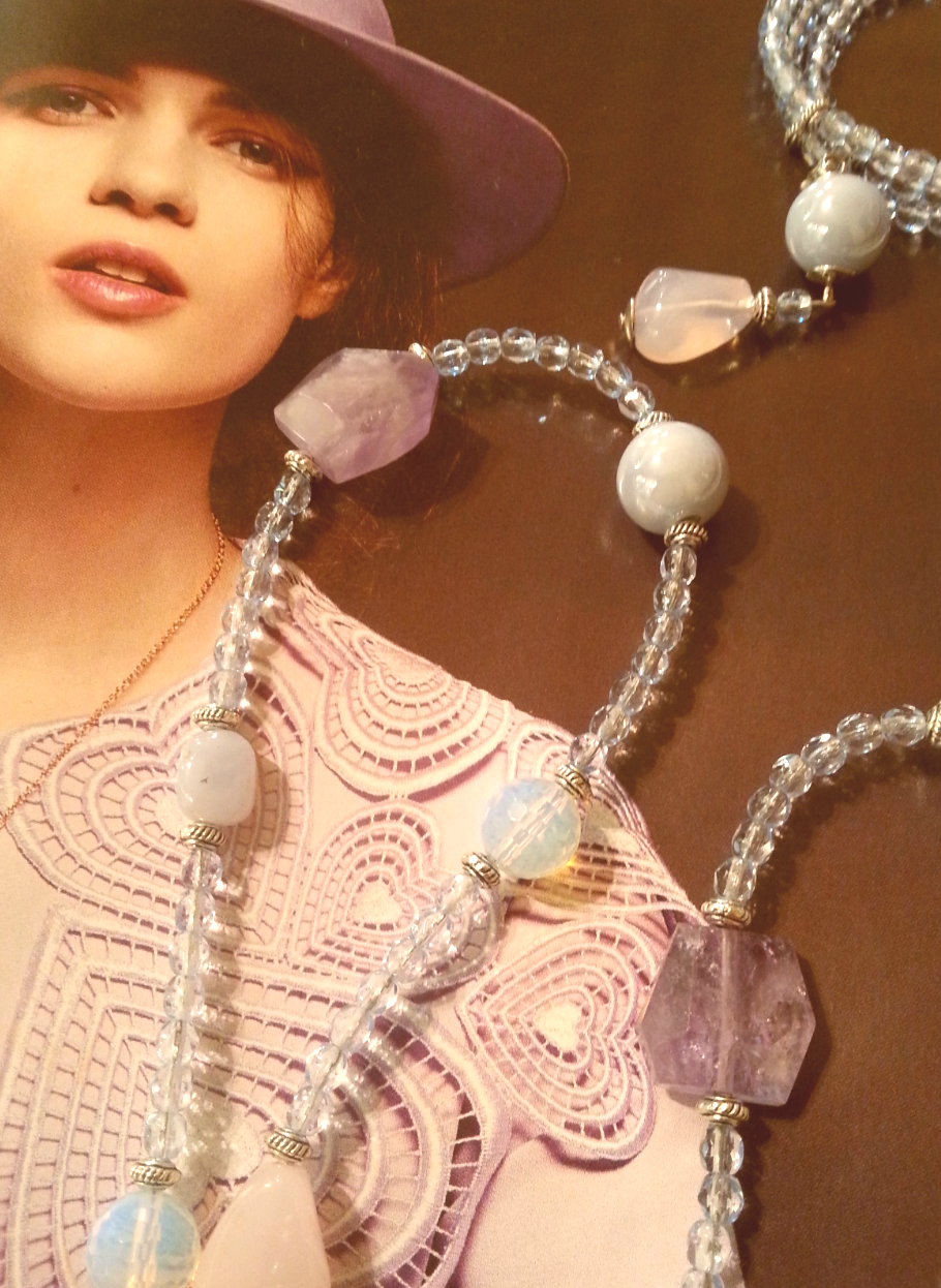 La collezione ” Sequenze” ragiona su delle ferree regole matematiche, ovvero, sull’ intervallare di 5 tipi di pietre distanziate da 7 micro cristalli, con la possibilità di abbinare più esemplari di collane insieme, e di varie lunghezze.