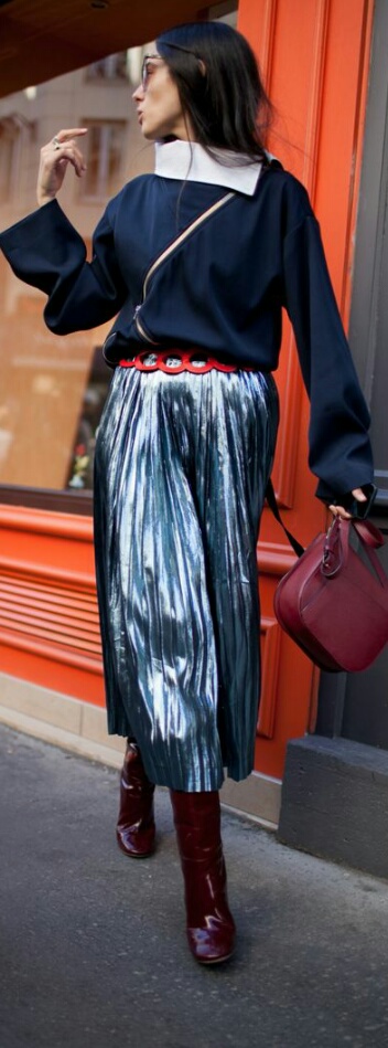 Nell’inverno è già un must! La gonna in plissé diventa un capo imprescindibile, facilmente trasformabile da capo da giorno a capo da gran sera, variando gli accessori e gli abbinamenti, utilizzando camice dal taglio maschile o bluse iper femminili.